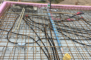 Nun wird die Filigrandecke mit Überbeton, i. d. R. 20 cm stark, verlegt. Hierin verlegt: